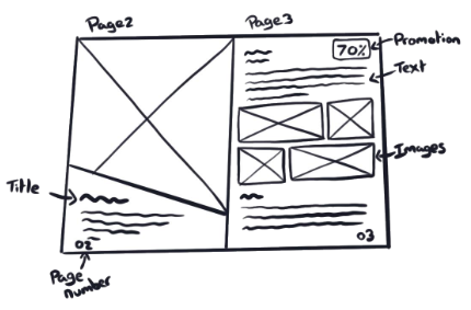 I created sketched wireframe designs for the brochure based on client input, distilling their requirements into visual layouts. Through iterative discussions and analysis, I conceptualized structures and content arrangements. These wireframes served as a blueprint, facilitating efficient refinement and alignment with the client’s vision.